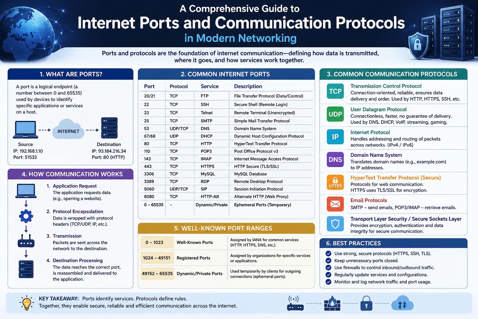 Both ports rely on structured protocols that define how requests and responses are handled. They also depend on underlying transport mechanisms to ensure data is delivered correctly. In this sense, they are part of the same ecosystem and work in similar ways at a basic level.